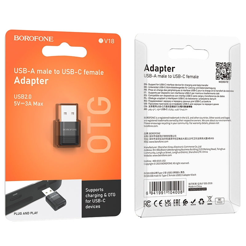 HOCO BOROFONE BV18 USB-A Male to Type-C Female USB2.0 Data OTG Adapter